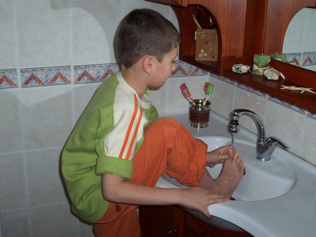 Sol ayak yatık ve üzerinde oturulmuş. Sağ ayak dik ve başparmağı